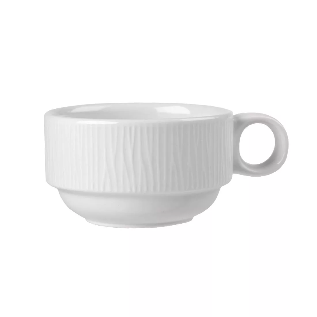 As you can stack these cups and store a large amount in a relatively small space, they are perfect for use when running functions or conferences. The outside walls are surrounded with an embossment that was inspired by the natural shape and form of wild bamboo and brings a tranquil and relaxing element to the drinking experience. The cups are finished with a specially developed glaze that will resist the marking that can be caused by stacking.