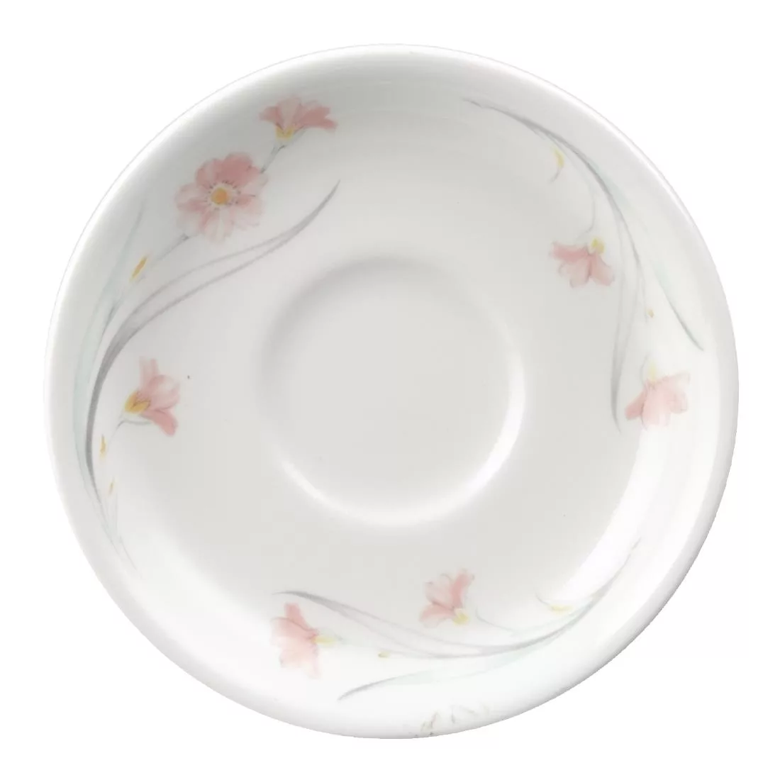 Nova collection by Churchill combines contemporary understated design with functionality and durability featuring Chelsea’s delicate pastel floral spray in pale pinks and greens. These saucers have a vitreous body which does not absorb moisture making them more hygienic.