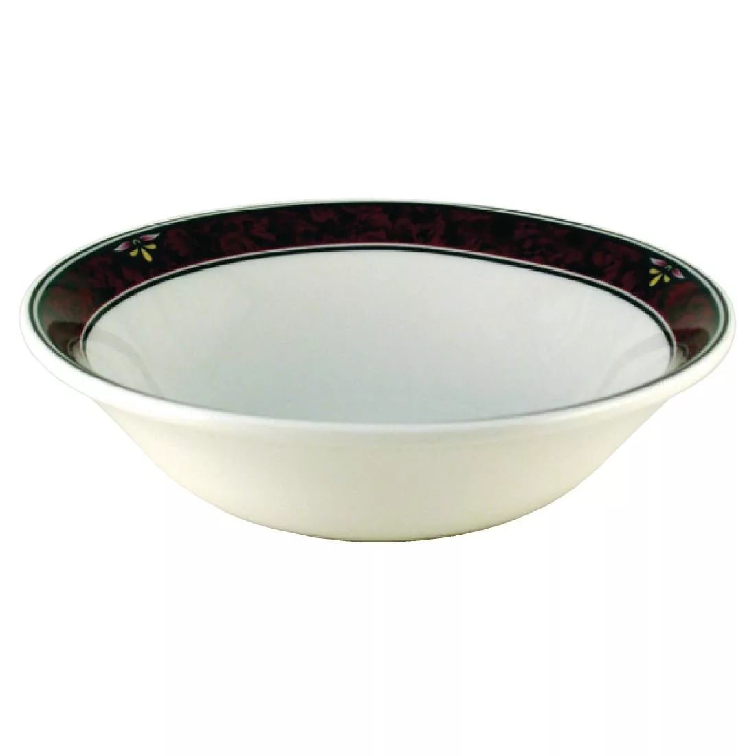 Designed for the true connoisseur these Milan range oatmeal bowls by Churchill are patterned with a deep marbled border, inset with jewelled motif and edged with a fine line, available on a number of different whiteware pieces.