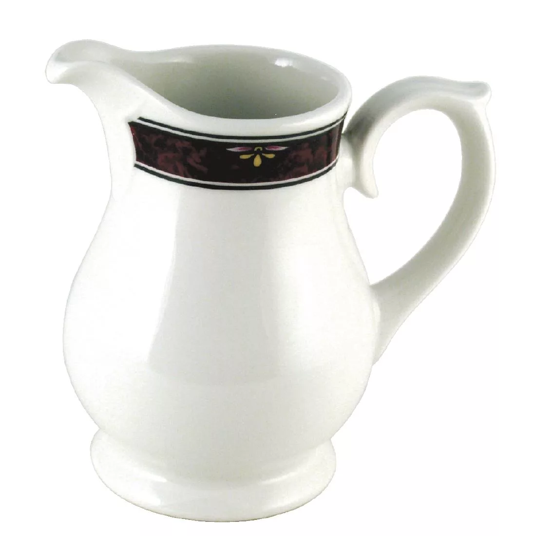 Designed for the true connoisseur these Milan range sandringham jugs by Churchill are patterned with a deep marbled border, inset with jewelled motif and edged with a fine line, available on a number of different whiteware pieces.