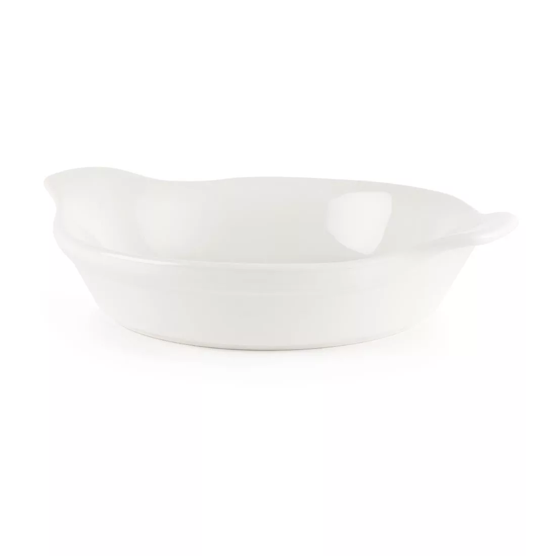 Specifically designed to withstand the rigours of the busy catering environment, this readily available range of appealing oven-to-tableware round-eared flat bottomed dishes for shirring eggs by Churchill are durable and chip resistant, offering excellent heat retention properties.