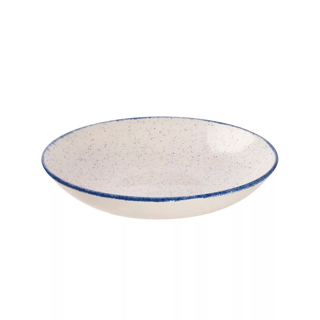 These Churchill Stonecast coupe bowls are constructed in a modern coupe shape which helps build height into your presentation. The speckled white glaze is kiln reactive and ensures a unique finish on each bowl which is then complemented with a contrasting indigo blue band. These 248(Ø)mm bowls are the perfect tableware for any restaurant or hotel wanting contemporary dinnerware with slightly rustic styling and are suitable for commercial dishwashing and microwave usage.