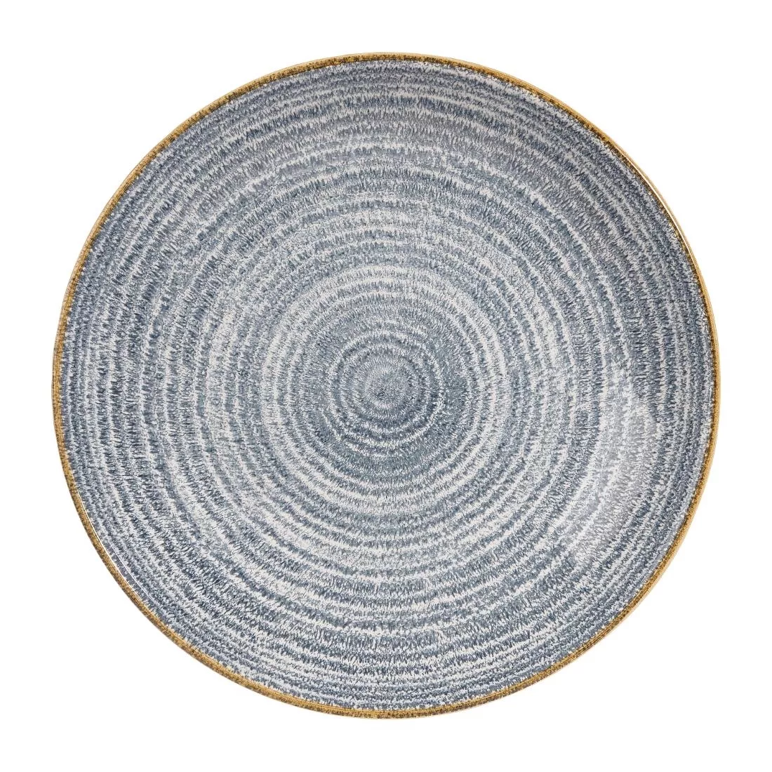 These 248(Ø)mm Studio Prints bowls are finished in a delicate slate blue. The tightly wound, swirling pattern gives a rustic finish to these luxuriously-appointed coupe bowls by Churchill. Each bowl finishes with a contrasting bronze rim and is constructed from super vitrified ceramic in order to give unrivalled thermal and physical shock resistance. These hardwearing plates are therefore perfect for use in the busiest businesses and most demanding commercial kitchens. Suitable for commercial dishwashing, microwaving and available in other colours, these bowls can be combined with plates from the Churchill Studio Prints collection.