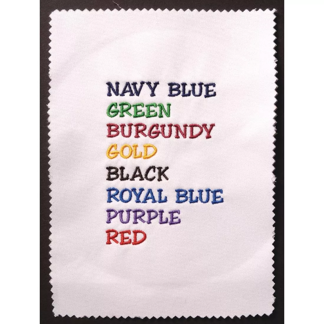We can embroider up to 30 letters on the garments chest or upper sleeve. Select your typeface and colour from one of the above styles. Height of letters is approx 12mm. It is also possible to embroider bib aprons, baseball hats and tabards with larger lettering. Exact positioning of embroidery is left to the discretion of our embroidery experts unless we are otherwise instructed. See ordering instructions on order form.