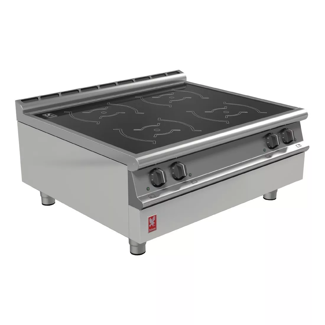 As part of the renowned Falcon Dominator Plus range, the E3904i induction boiling top has been specifically designed to provide powerful, instant heat whilst still being incredibly efficient and reliable. With four independently controlled 3.5kW heat zones over its 6mm toughened glass hob, the boiling top is very easy to clean and can simply be wiped down at the end of service. The hob automatically cuts power when pans are removed to reduce operating costs and to help contribute to a cooler kitchen. Supplied with sturdy feet for countertop use.