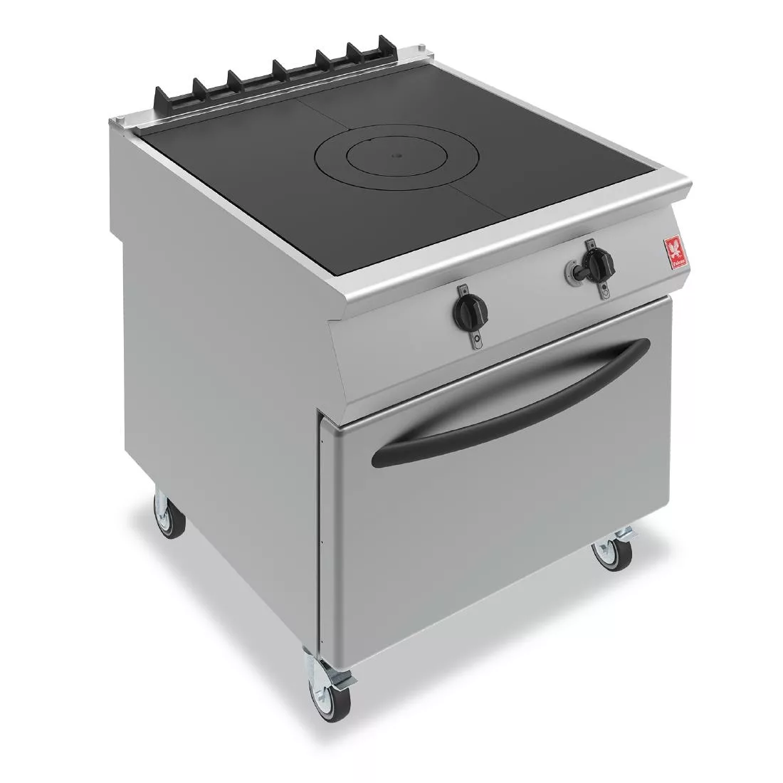 An essential addition to any professional kitchen, the natural gas Falcon F900 G9181 solid top oven range features a hugely powerful 10.3kW bullseye burner which delivers heat up to 450?C – ideal for the most demanding multi pan cooking. The large oven compartment is fully gastronorm compatible and can accommodate 2/1 gastro pans over five shelf positions. Temperature control is via two front mounted dial thermostats which provide precise and responsive regulation of the solid top and oven. Fitted with castors for manoeuvrability and ease of cleaning.