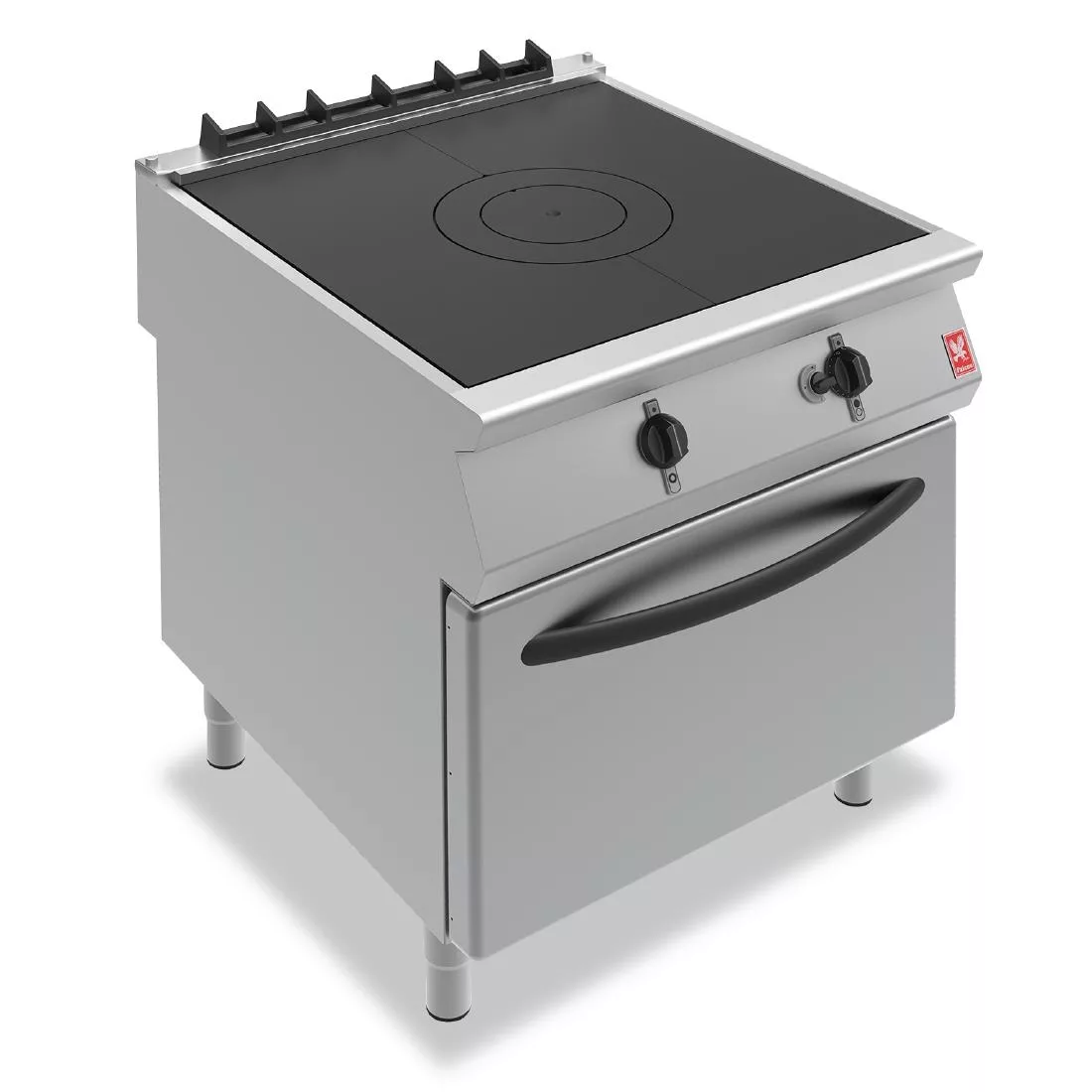 Ideal for busy professional kitchens in schools, care homes, hotels and hospitals, the propane gas Falcon F900 G9181 Solid Top Oven Range includes all the features you’d expect to help save time and energy during service. The single bullseye solid top, alongside the hugely powerful 10.3kW burner, delivers heat up to 450?C at the centre of the plate. This enables a huge range of cooking styles – from a gentle simmer to high-heat rolling boil, all on the same 730x740mm solid top cooking surface. The large oven features five shelf positions and can accommodate double size (2/1) gastronorm pans, making it ideal for quickly transferring dishes between appliances. Fitted with sturdy height-adjustable legs.