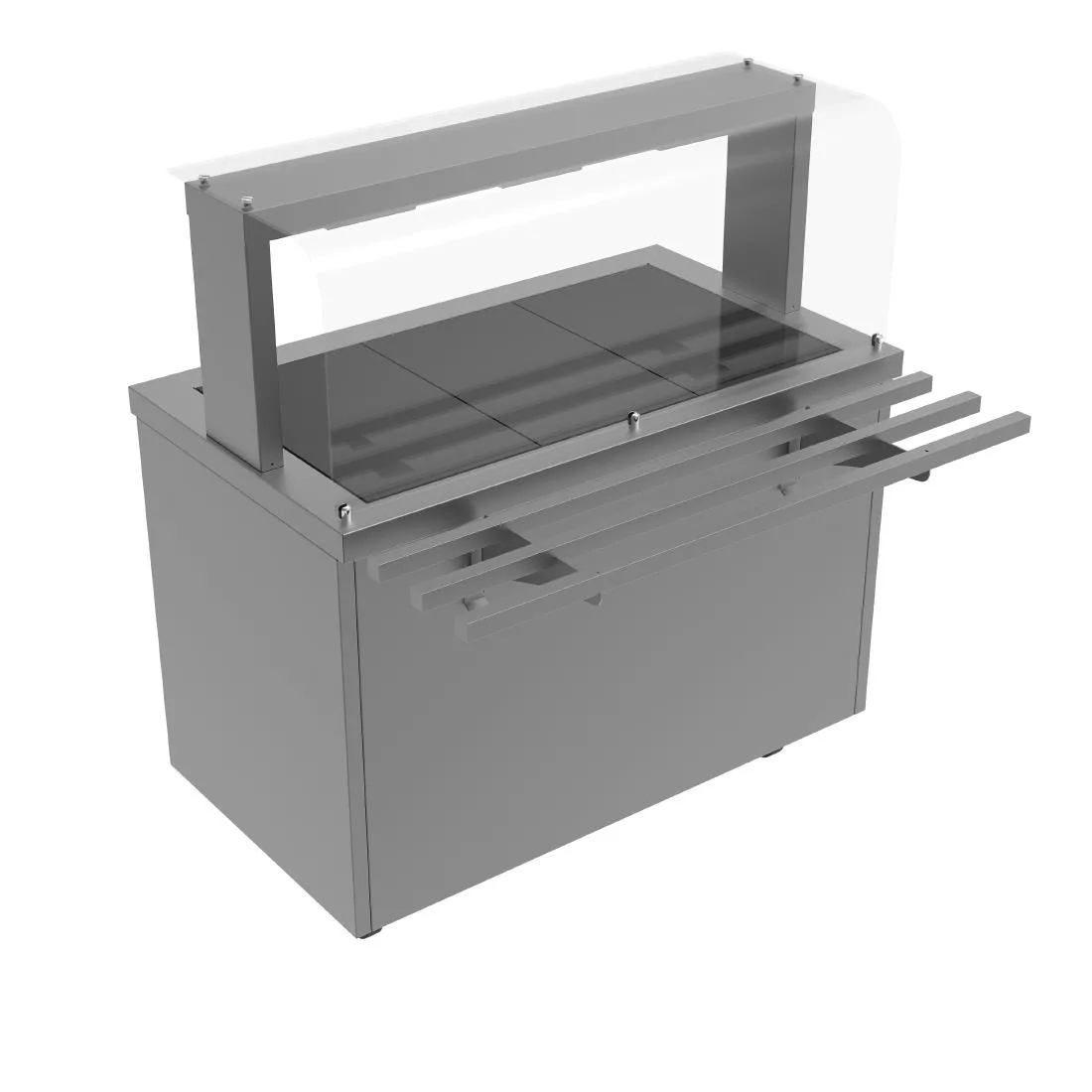 The gantry features a full height glass sneeze guard and overhead lamps which also help keep food at ideal serving temperature. A full width, fold up trayslide is supplied. The hot cupboard underneath is fan-assisted, ensuring an even heat across the entire chamber and making sure food is kept at the proper temperature whilst being held until required. The chamber holds 6 x 1/1 GN containers. the gantry, hot top and hot cupboard are all independently controlled so can be turned on and off as required, saving energy.