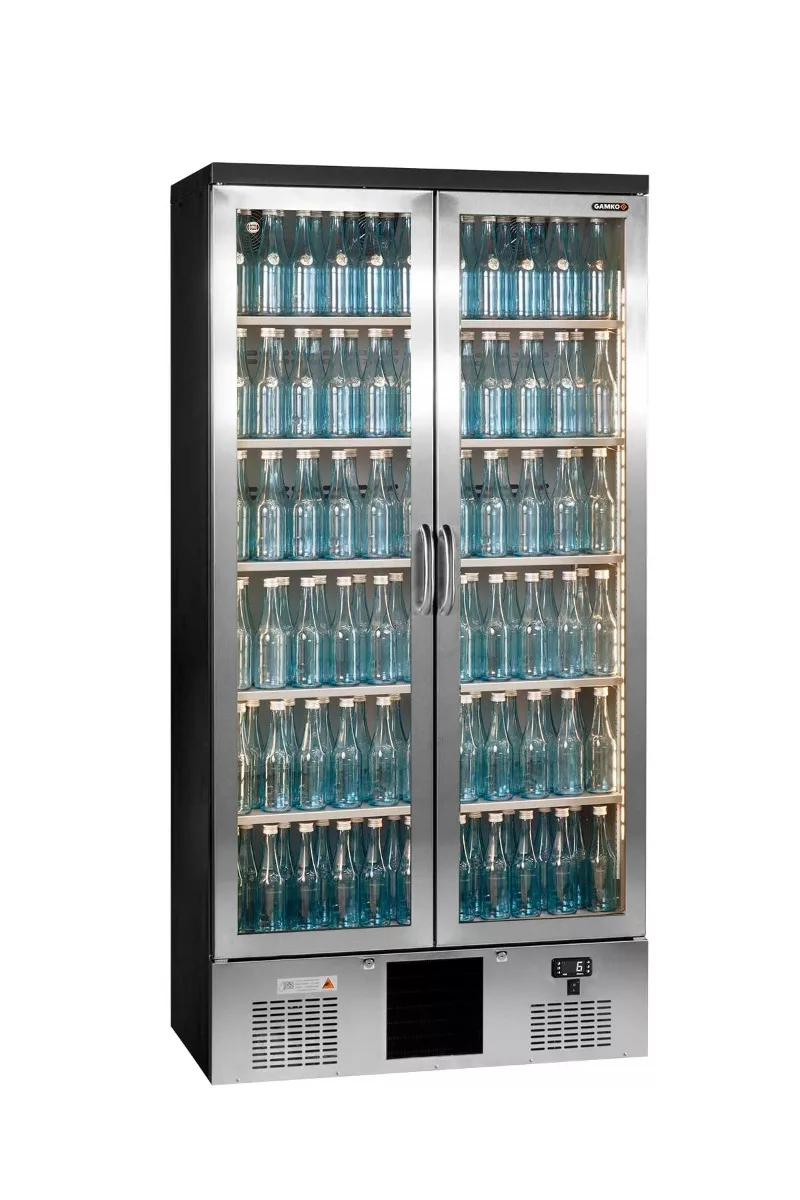 The Gamko Maxiglass MG3/500GCS Hinged Double Stainless Steel Frame Glass Door Upright Bottle Cooler is designed with presentation in mind bottles are served at the optimum temperature making sure quality drinks taste great Maxiglass guarantees savings with lower energy consumption.