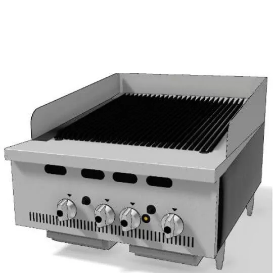 • 600mm Charbroiler with 4 burners and a maximum working temperature of 380 °C