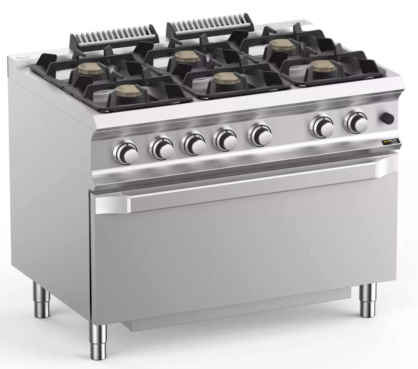 Hobart Ecomax HEFB711FGMXL 6 Burner Gas Hob (6 x 7kW) with Jumbo Gas Oven (8kW) 50kW