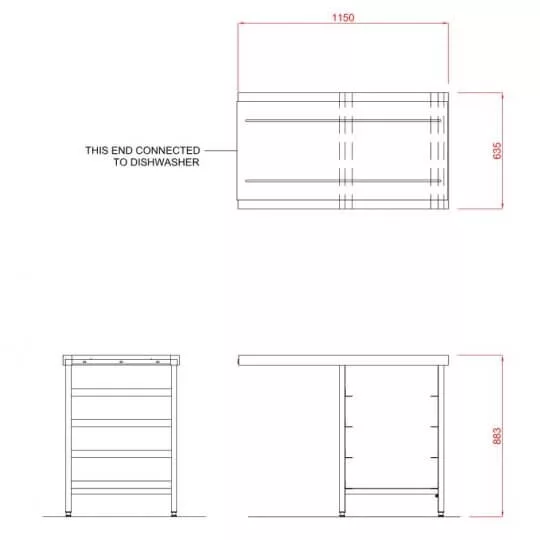 The Hobart SCR1150 Outlet Single Rack Table has welded high-grade stainless steel tabling.