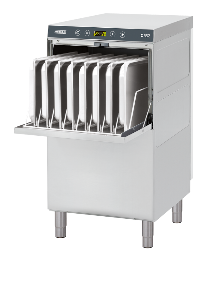 - Accurate detergent & rinse aid peristaltic dosing pumps included