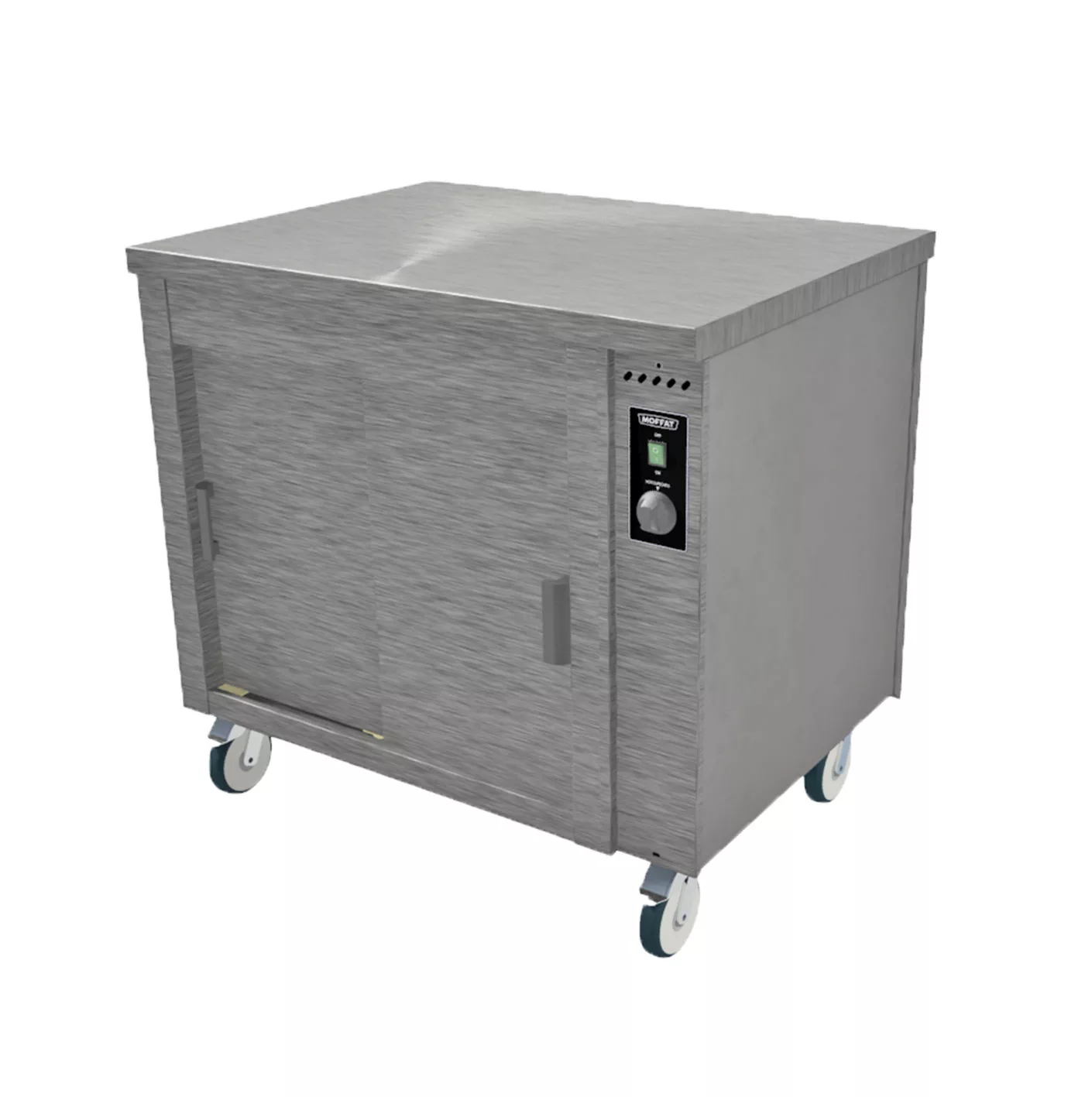 Mobile hot-cupboards with sliding doors on both sides. Based on Gastronorm GN1/1 pans available in four lengths. Compact high capacity units, hot food or plates and dishes can be held warm ready for service. Fully insulated robust stainless-steel construction with a solid plain top. A heavy-duty range aimed at the busy kitchen particularly suited to Restaurants, Hotels, Conference Centres, Universities, Schools, and Holiday Centres. Excellent for pre-heating plates and dishes, as well as the temporary storage of precooked food e.g. cooked meats, poultry, vegetables, sauces, etc. With an energy saving, fast heat up and recovery forced air heating and recirculation system, spreading the heat evenly throughout the cupboard.