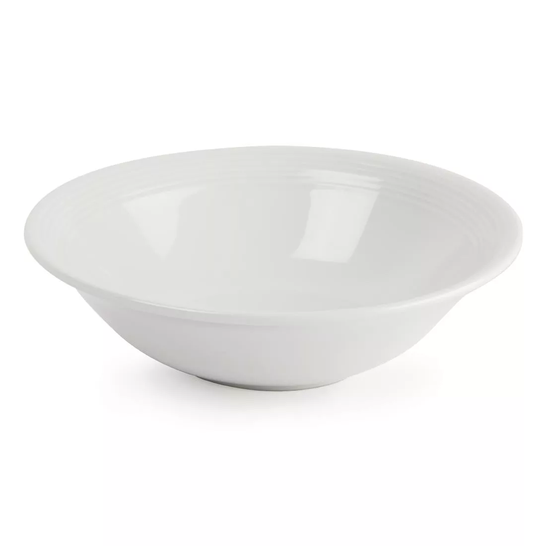 This stylish oatmeal bowl from the Linear range by Olympia is made from plain white porcelain and features a delicately embossed lined pattern. The bowl is fully vitrified, giving excellent heat and shock resistance and glaze durability, making it robust and able to withstand the rigours of a professional catering establishment.