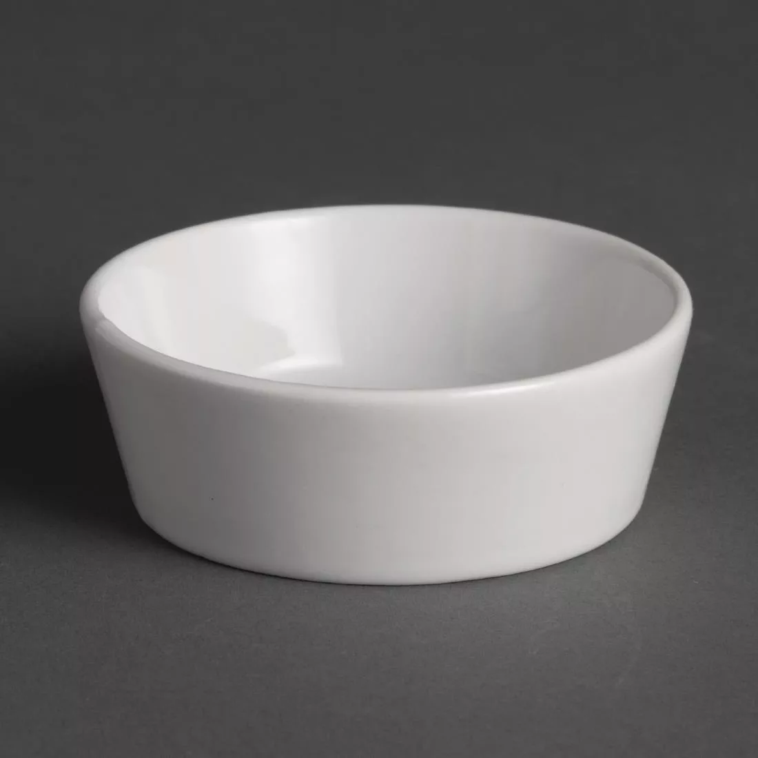 This round miniature dish from Olympia is designed to provide a great value and hardwearing porcelain crockery solution for single bites and dips. Strengthened rolled edges ensure the dish is chip resistant and the fully vitrified body gives great glaze durability, making it ideal to withstand the rigours of the professional catering environment. The dish is oven, microwave, dishwasher and freezer proof.