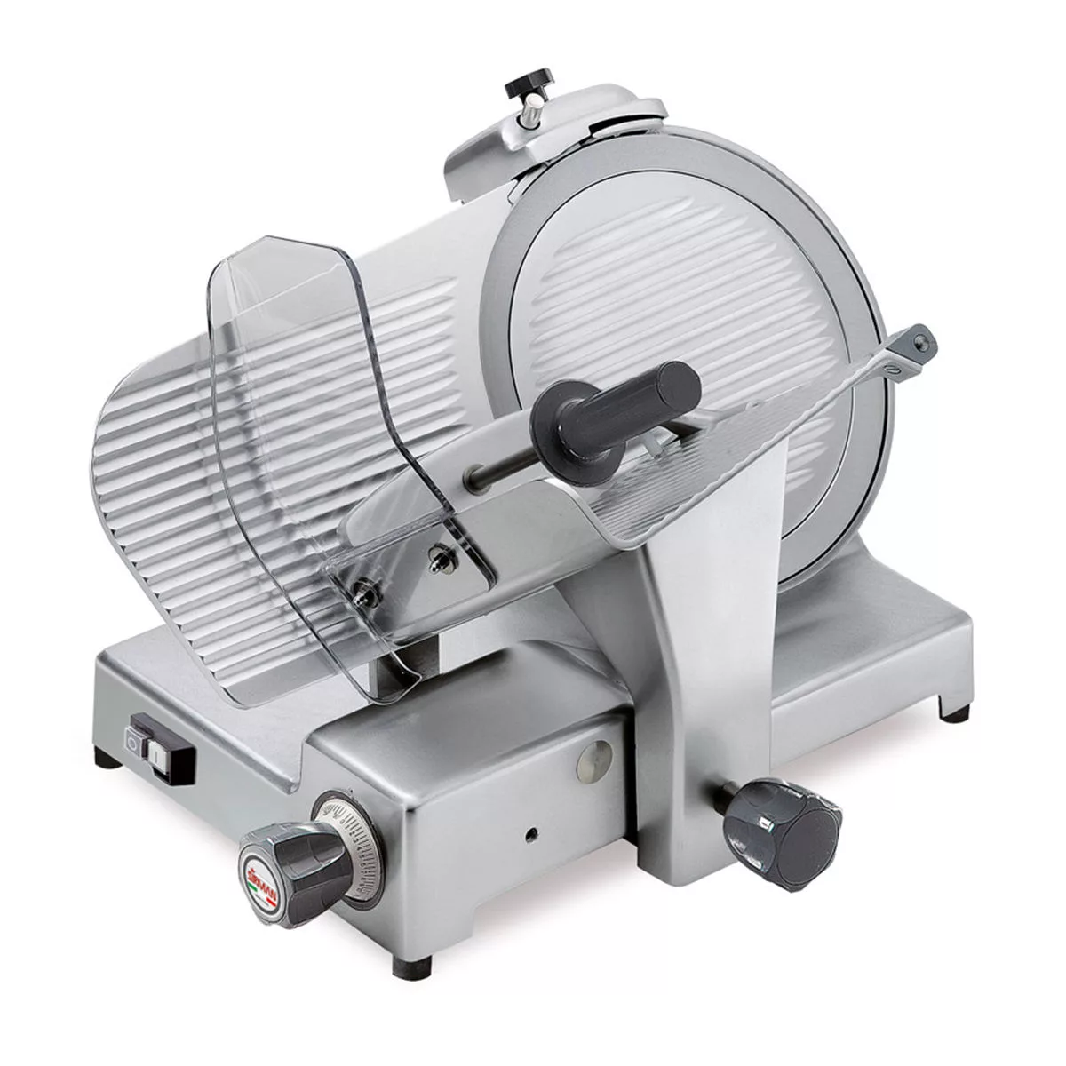 Sirman Canova 300 Meat slicer – Heavy-duty gravity feed slicer with chromed steel blade & ventilated motor for reliable continuous use. Produces cuts up to 14mm thick. Supplied with standard blade removal tool. Non-slip feet for secure, stable placement.