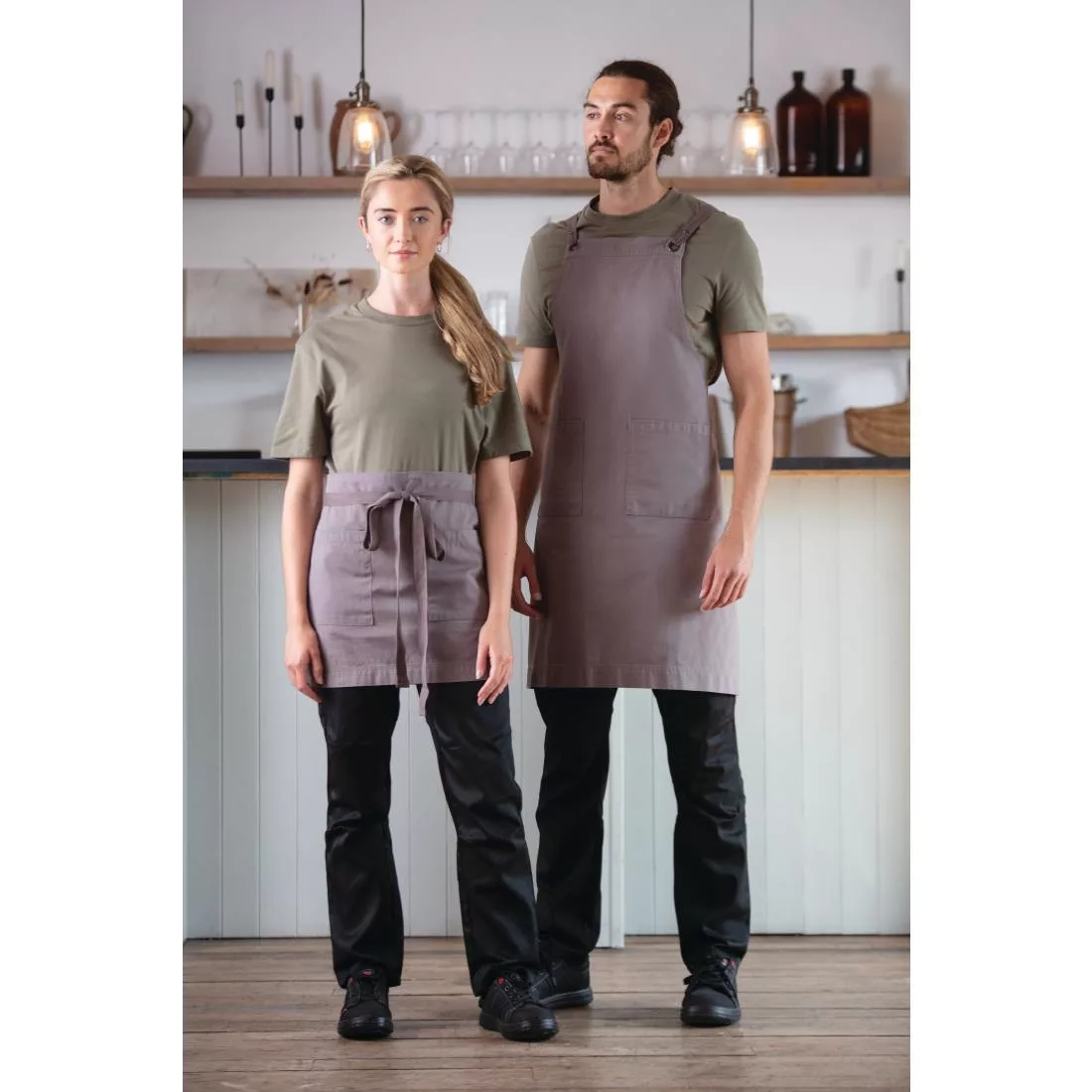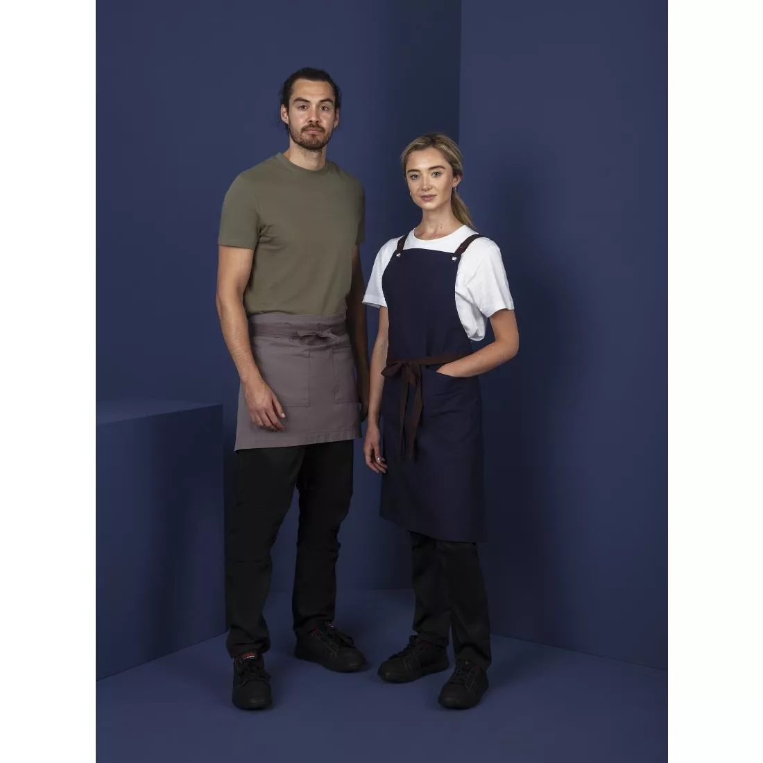 New apron range from Southside. Contemporary and professional kitchen clothing. Perfect for the city-come-farmers market deli, the brewery taphouse, the speciality coffee bar. Cotton canvas and linen blend aprons sit alongside existing range of denim aprons. Perfect for both front of house and back of house use. Gives a contemporary look to staff uniforms. Breathable and lightweight fabrics for hot and busy environments. Can change the look of the aprons by changing the colourway of the straps; FT607, FT608, FT60 available as spares.