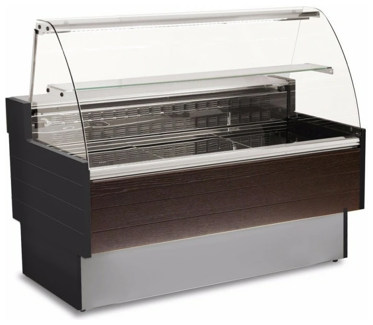 Made in the EU, the Sterling Pro KIBUK150 Serveover features a large 560mm deep stainless steel display deck, wooden side walls, automatic defrost, electronic controls and curved glass.